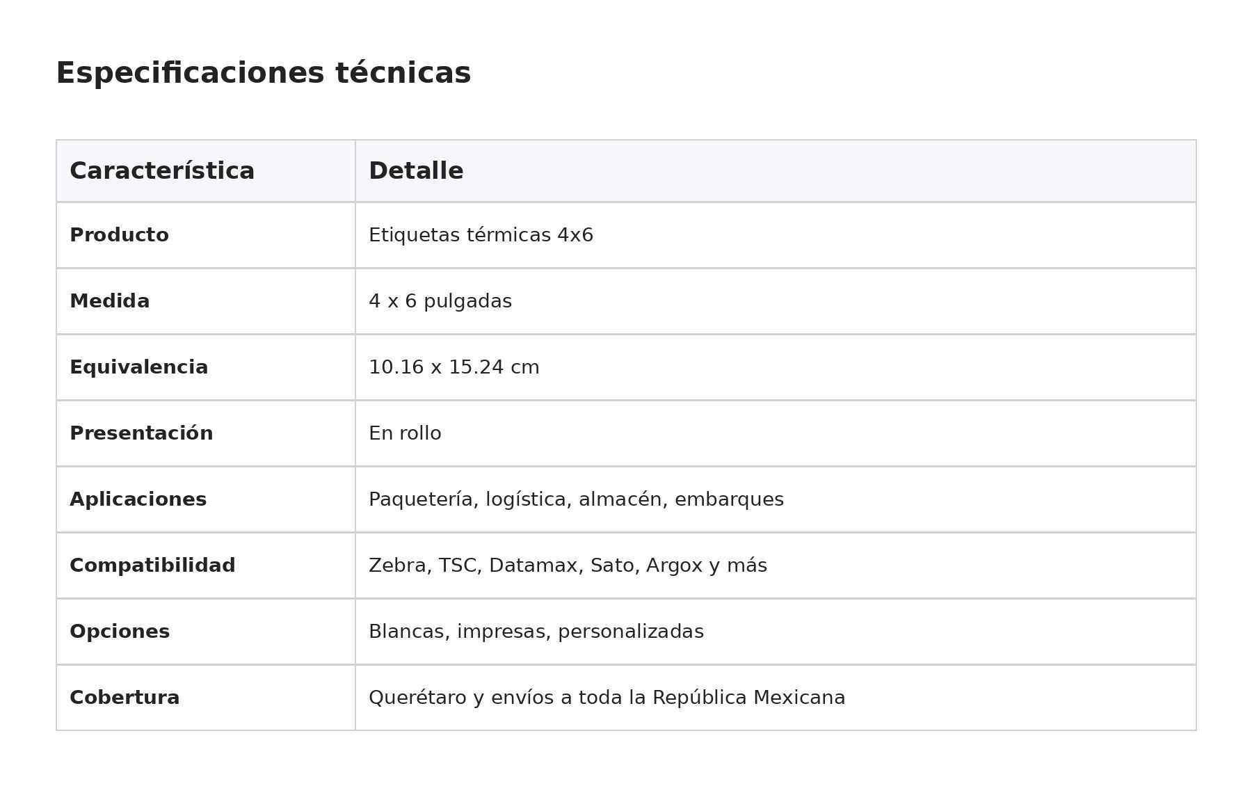 Sí, podemos ofrecer etiquetas 4x6 en térmico directo y también otras configuraciones según la aplicación.