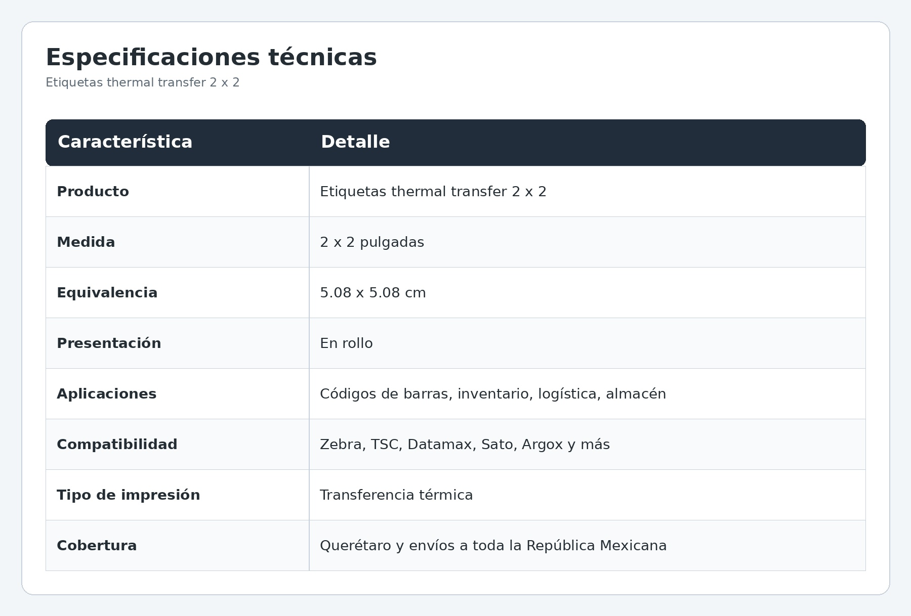 Etiquetas Thermal Transfer 2 x 2 para Códigos de Barras, Inventario y Logística